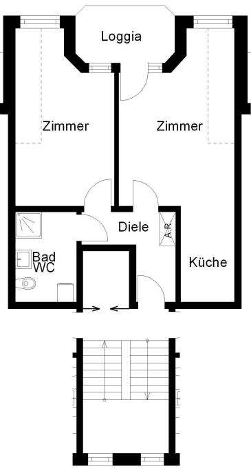 Die Wohnung befindet sich in 46535 Dinslaken-Stadtmitte. Der Ort liegt am Niederrhein. Dinslaken ist eine Stadt mit ca. 72.500 Einwohnern. Der Wohnort hat eine Anbindung an die Autobahnen A59 und A3, sowie einen DB-Bahnhof mit direkter Anbindung an das Ruhrgebiet und mit einer Straßenbahnverbindung nach Duisburg.